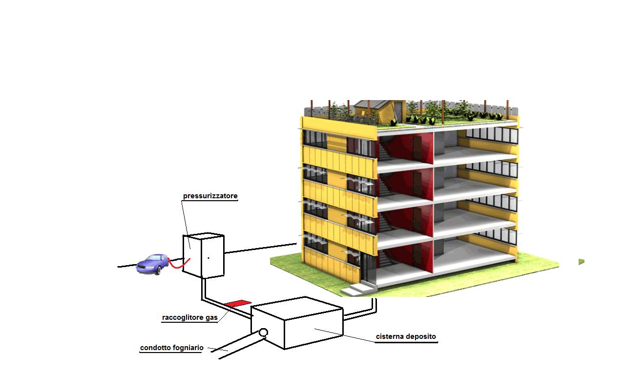 Ogni condominio ha una cisterna sotterranea isolata dove vengono accumulati, per il tempo necessario, gli scarichi dei condomini, dopodiché una pompa preleva il gas generato e inviato ad un pressurizzate di gas per poi farne combustibile gratuito per i proprietari del palazzo.