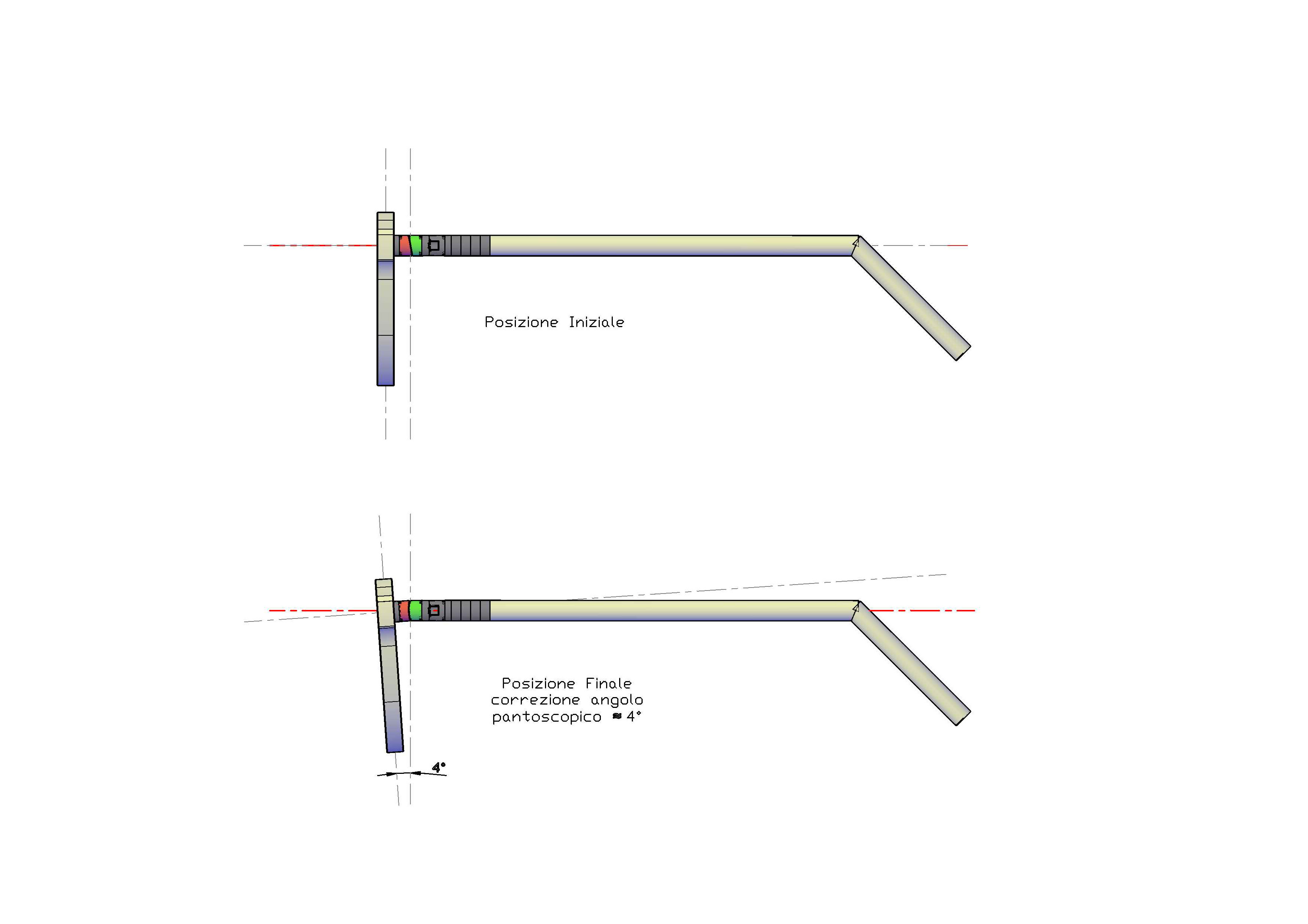 La modifica dell’angolo pantoscopico si ottiene intervenendo simmetricamente su entrambe le aste.